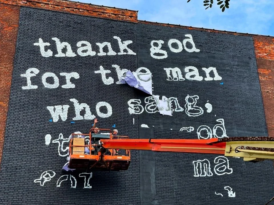 A series of 16 murals - all done in one week by WRDSMTH who grew up in Cleveland area and moved to Chicago for an advertisement agency before moving to Los Angeles to pursue his writing career. While in LA, WRDSMTH came up with his idea of doing illegal street art using a typewriter without vowels and a sheet of paper with quotes and sayings that he wrote. This quickly took hold and his WRDSMTH pieces became viral and now are found all over the world.